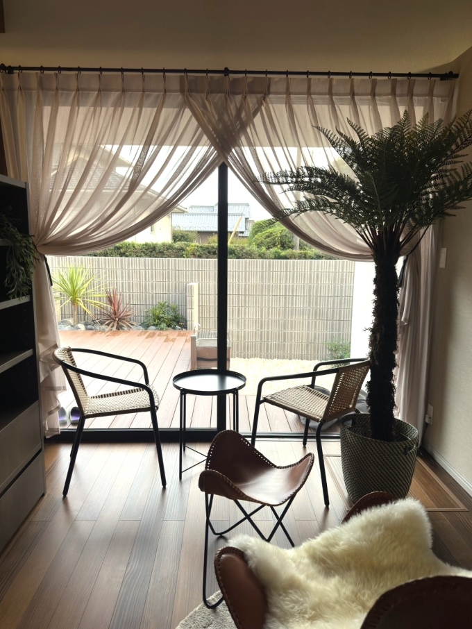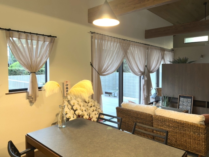 やわらかなシアーカーテンが光を取り込み、お部屋全体がリゾートのような心地よさに。